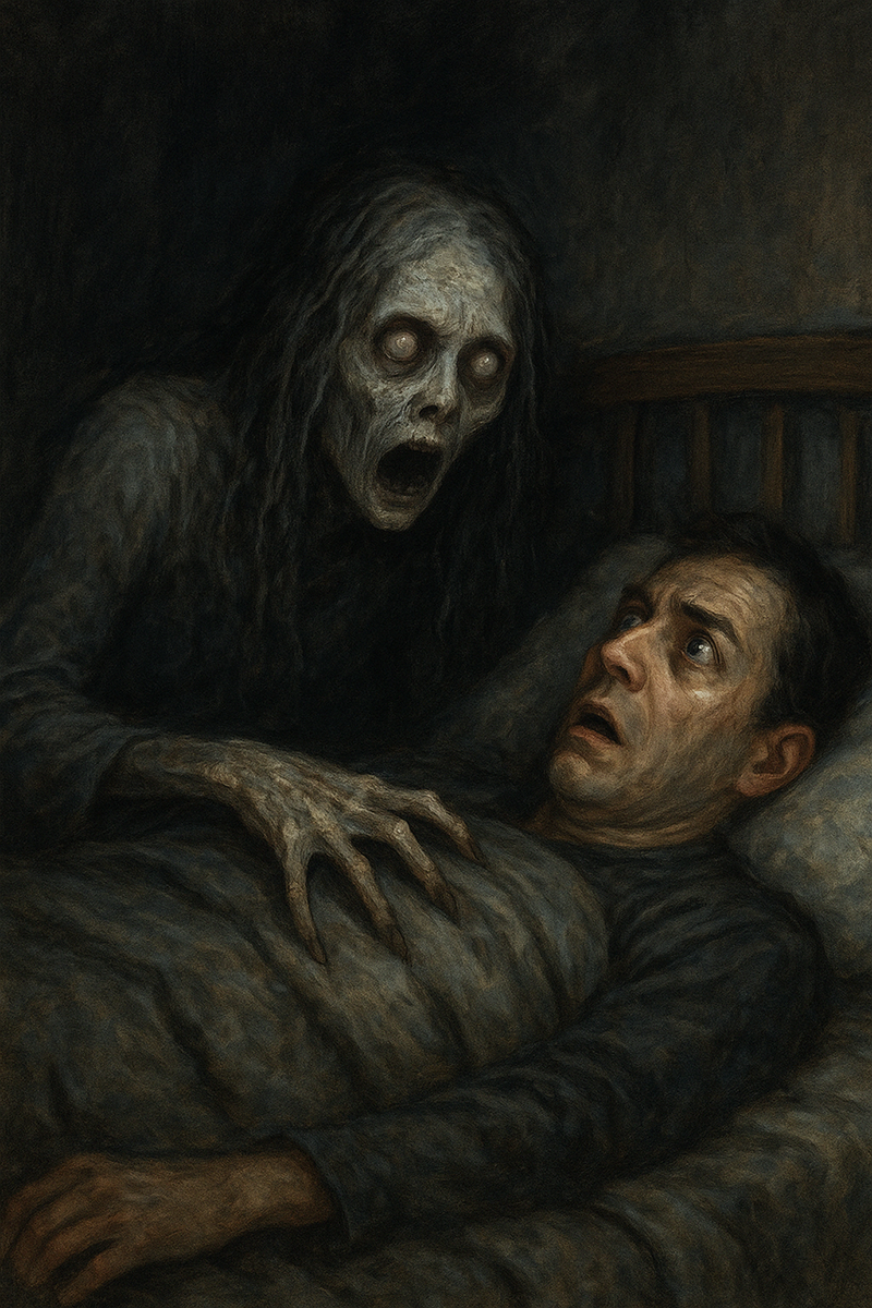 I tried to move, but the pressure held me in place. The room was silent, but I wasn’t alone. I could feel it—the undeniable sense of something leaning over me, inches from my face. The skin along my arms prickled as if icy breath was drifting across me.